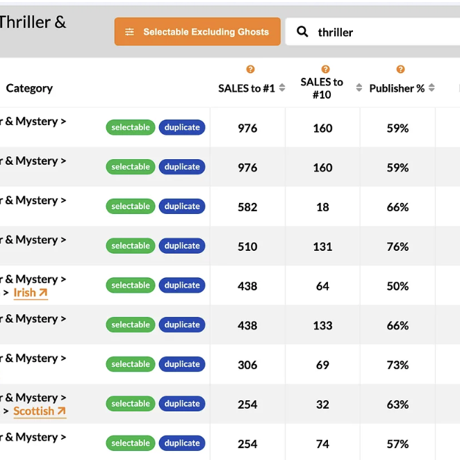 Underneath the simplicity of the text box choices, though, lies a quagmire of alternatives. Plodging my route through the boggy mess of categories and keywords, will determine the success or failure of my should-be international bestseller. Because my odds of reaching that status are minuscule to start with. For context, Lee and Andrew Child’s latest book, is #4 on the best seller list, with more than 33,000 purchases.